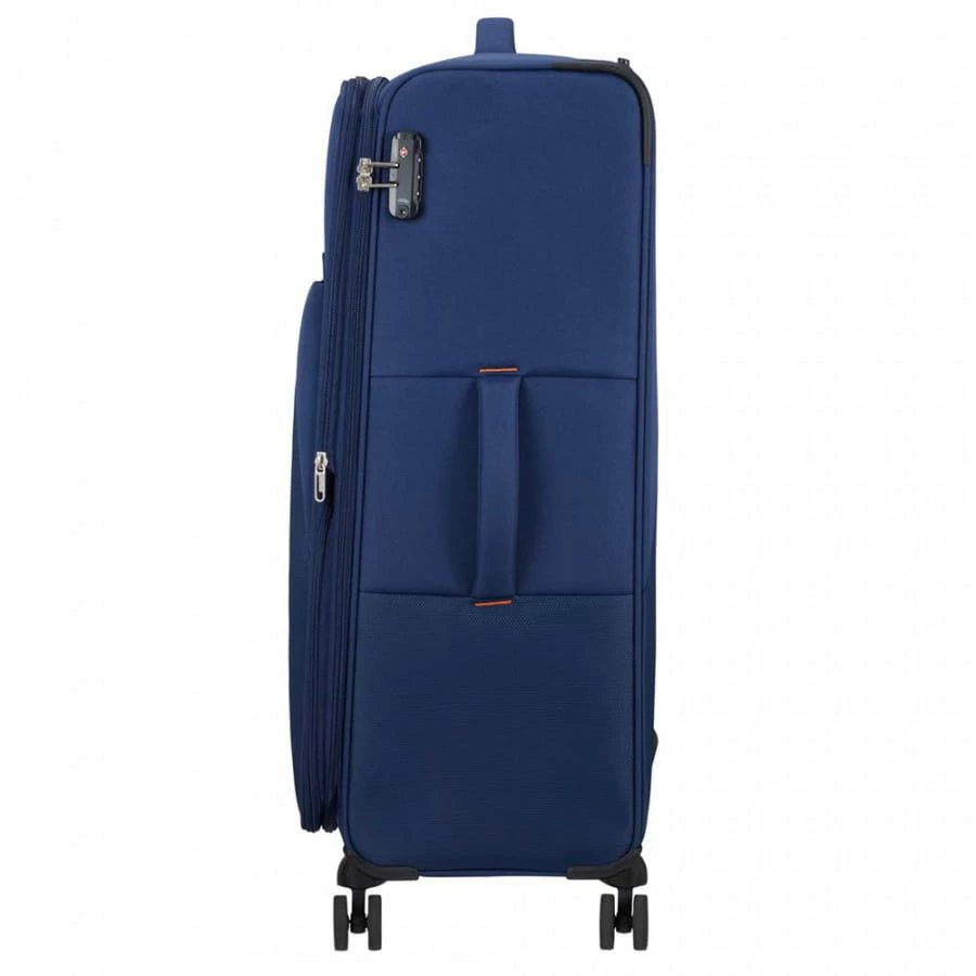 Der American Tourister Sun Break Trolley kann dank seines schlichten aber modernen Designs sowohl für den Urlaub oder die Geschäftsreise verwendet werden. Die mitgeführten Utensilien finden im großen Hauptfach mit integrierten Packriemen und dem separatem Reißverschlussfach unter dem Deckel platz. Das Innenfach kann zudem mit dem im Korpus integrierten TSA-Zahlenschloss (3-stellige Kombination frei wählbar) sicher verschlossen werden. Transportiert wird der Koffer mithilfe der Handgriffe, der 3-Fach arretierbaren Trolleystange und der vier 360-Grad Doppelrollen. Dank des verarbeiteten Polyesters ist er zudem besonders leicht, wasserabweisend und strapazierfähig.