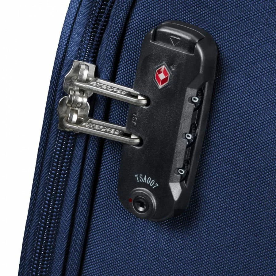 Der American Tourister Sun Break Trolley kann dank seines schlichten aber modernen Designs sowohl für den Urlaub oder die Geschäftsreise verwendet werden. Die mitgeführten Utensilien finden im großen Hauptfach mit integrierten Packriemen und dem separatem Reißverschlussfach unter dem Deckel platz. Das Innenfach kann zudem mit dem im Korpus integrierten TSA-Zahlenschloss (3-stellige Kombination frei wählbar) sicher verschlossen werden. Transportiert wird der Koffer mithilfe der Handgriffe, der 3-Fach arretierbaren Trolleystange und der vier 360-Grad Doppelrollen. Dank des verarbeiteten Polyesters ist er zudem besonders leicht, wasserabweisend und strapazierfähig.