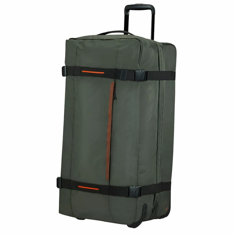 Die American Tourister Urban Track Reisetasche eignet sich für Alle, die organisiertes Packen und Tragen schätzen. Mit zwei Reißverschluss-Vortaschen und dem zweigeteilten Hauptfach mit zwei separaten Innenfächern (inklusive Packriemen) bietet die Rollentasche viel Platz und Ordnungsmöglichkeiten. Zwei Rollen, die mehrfach arretierbare Trolleystange und Handtragegriffe sorgen für einen hohen Transportkomfort. Weitere Features sind das TSA-Zahlenschloss (Kombination frei wählbar), der verstärkte Boden sowie das strapazierfähige und aus PET-Flaschen recycelte Polyester.