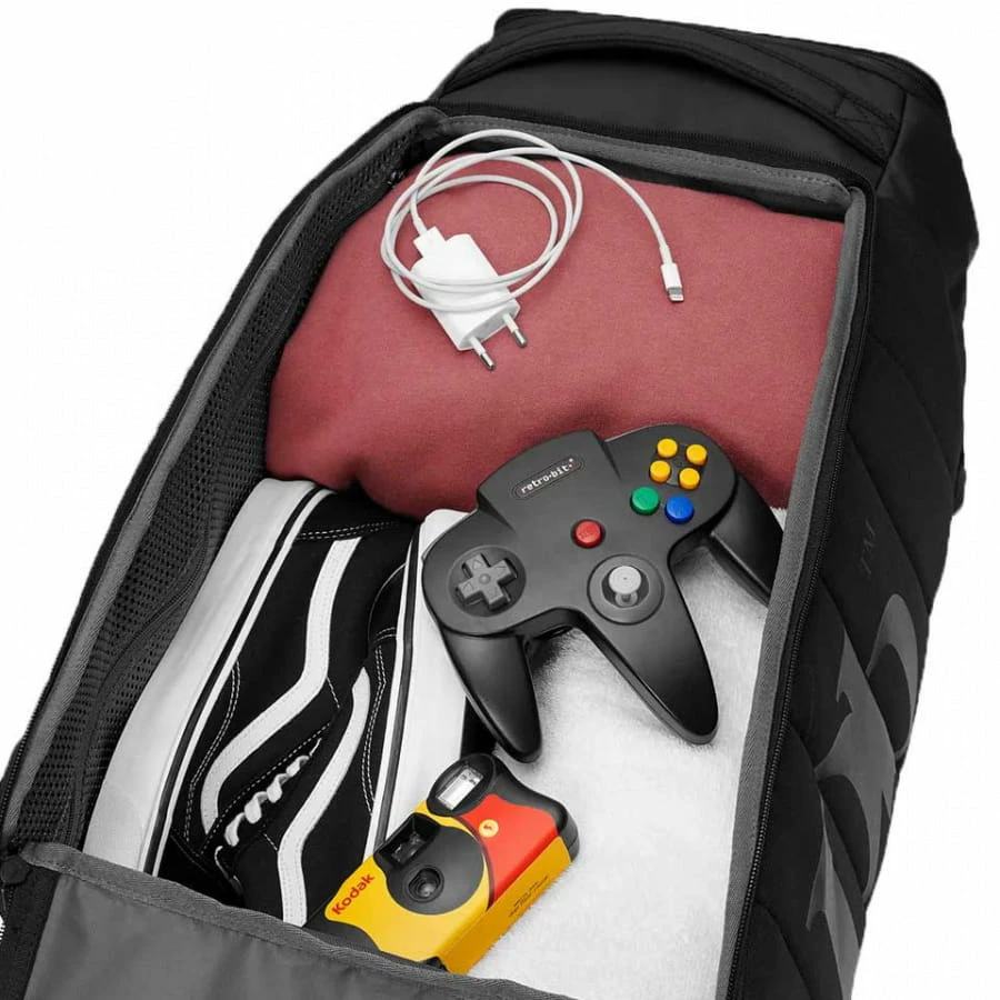 Der Rucksack verfügt über einen #8 YKK-Hauptreißverschluss und ein Hauptfach, das vollständig geöffnet werden kann, um den Zugriff auf den Inhalt zu erleichtern. Ein großer oberer Taschenbereich mit Netzinnentasche bietet Platz für kleine Gegenstände, während zwei interne Netzinnentaschen für eine optimale Organisation sorgen.