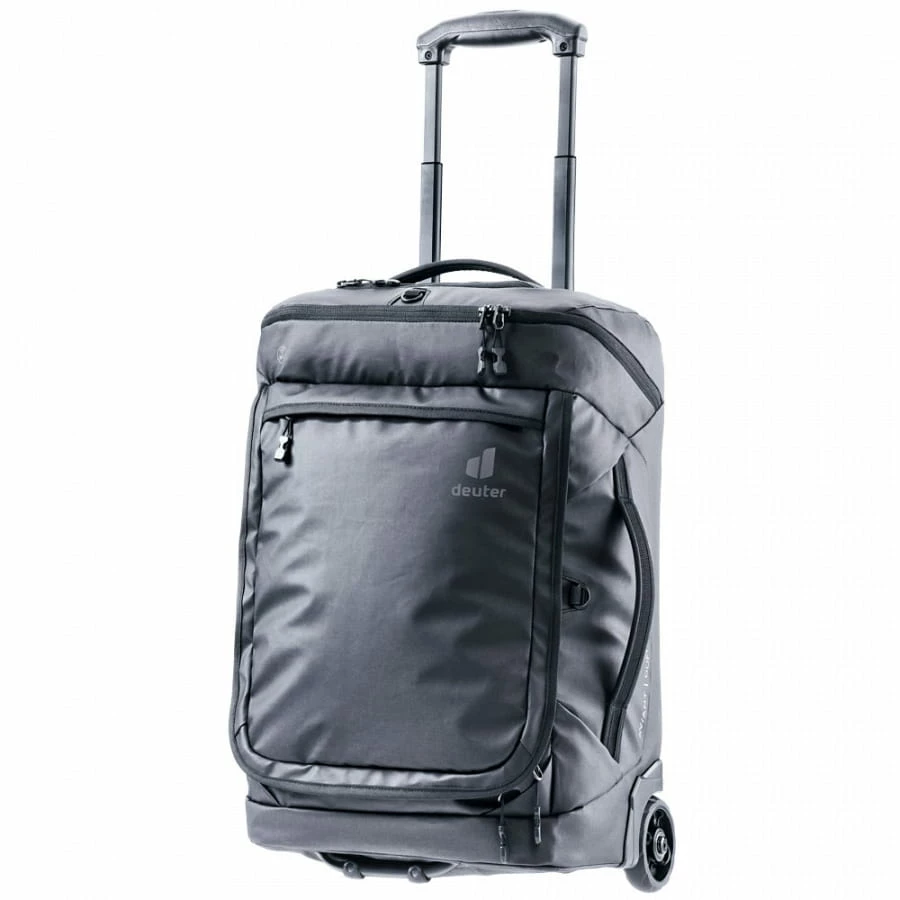 Der Deuter Aviant Duffel Pro Movo richtet sich vor Allem an sportliche Abenteurer, die einen wasserfesten und besonders robusten Reisebegleiter suchen. Dies erreicht der Trolley durch seine Bauweise und das verarbeitete Planen-Material (600D PED Coat), welches besonders wasserabweisend und strapazierfähig ist. Die zwei leisen sowie stabilen Rollen, Handgriffe, die mehrfach arretierbare Trolleystange und die verstaubaren Schulterträger (ja, der Trolley kann auch als Rucksack getragen werden) sorgen in jeder Situation sowohl für ein komfortables als auch für ein optimales Handling. Das Hauptfach mit großer Öffnung kann dank eines Fixpunktes mit einem Reißverschluss-Schloss (nicht enthalten) verschlossen werden, besitzt zwei RV-Netzinnentaschen und Packriemen zur Fixierung der Kleidung. Weitere Eigenschaften des Deuter Aviant Duffel Pro Movo 36 sind ein Dokumentenfach, eine weitere RV-Innentasche, ein Wertsachenfach und die geringe Größe (52 x 36 x 27 cm), wodurch er bei den gängigen Fluglinien als Bordgepäck mitgeführt werden kann.