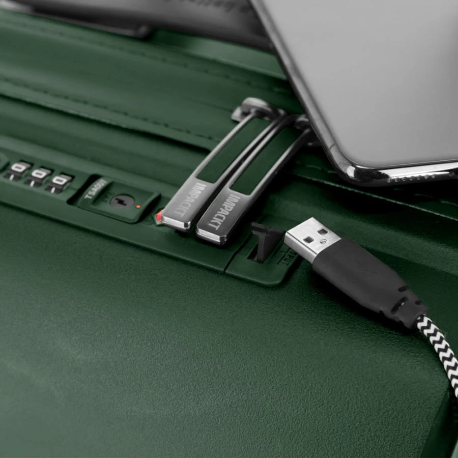 Der Impackt IP1 Trolley ist der perfekte Begleiter für deine Reisen und bietet dir zahlreiche praktische Funktionen. Mit seinem USB-Port kannst du deine elektronischen Geräte auch unterwegs problemlos aufladen. Das Material des Trolleys besteht aus recyceltem Polypropylen, was ihn nicht nur umweltfreundlich macht, sondern auch besonders robust und langlebig. Dank der vier Zwillingsrollen lässt sich der Trolley mühelos und leichtgängig fortbewegen. Die arretierbare Trolleystange ermöglicht es dir, den Trolley ganz einfach in der gewünschten Höhe zu ziehen. Zusätzlich verfügt der IP1 Trolley über einen praktischen Bodengriff, der das Heben und Tragen erleichtert. Die ergonomischen Tragegriffe sorgen für einen angenehmen und bequemen Transport. Die durchdachte Innenaufteilung des Trolleys bietet dir genügend Platz für all deine Reiseutensilien. Die Packgurte im Inneren halten deine Kleidung und andere Gegenstände sicher an ihrem Platz. Das TSA Zahlenschloss bietet dir ein Höchstmaß an Sicherheit und ermöglicht es den Sicherheitsbehörden, das Gepäck ohne Beschädigung zu überprüfen.