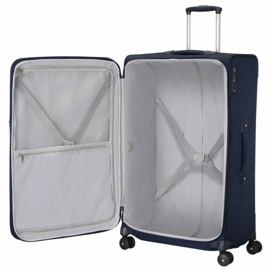 Der Samsonite Beauhaven Trolley ist ein praktischer 4-Rollen Weichgepäck-Koffer. Für die mitgeführten Reiseutensilien besitzt er eine Reißverschluss-Vortasche und das große Hauptfach (über ein dreistelliges TSA Zahlenschloss zu erreichen) mit integrierten Packriemen, RV-Innenfach sowie einem separaten Wäsche-/Hemdenfach. Transportiert wird er mithilfe der vier 360-Grad Rollen, der mehrfach arretierbaren Trollestange und der Handgriffe. Das verarbeitete Polyester des Samsonite Beauhaven Trolley ist besonders strapazierfähig, leicht zu reinigen und wasserabweisend. Dank der integrierten Reißverschluss-Dehnfalte kann das Volumen bei Bedarf zusätzlich erweitert werden.
