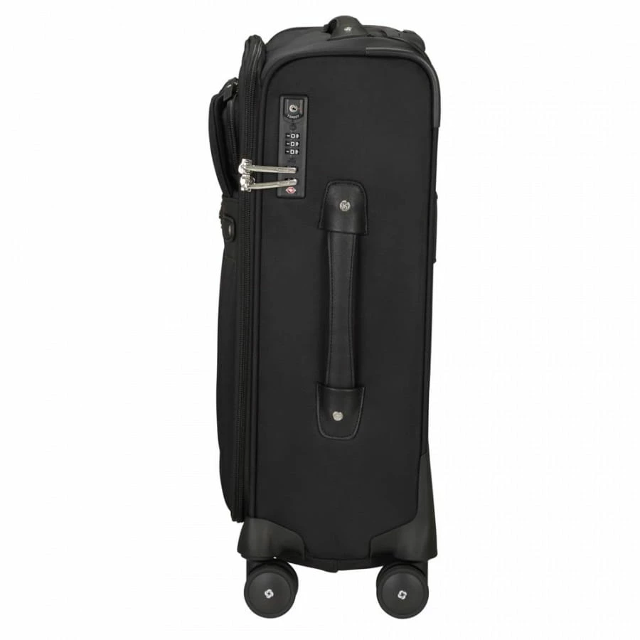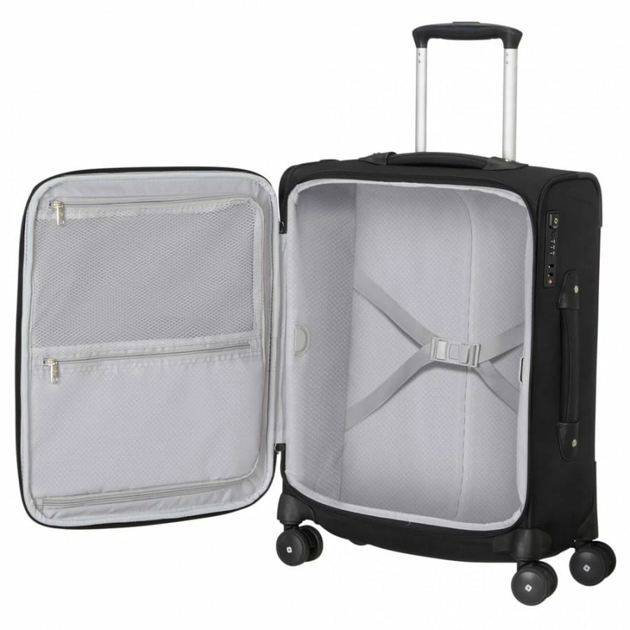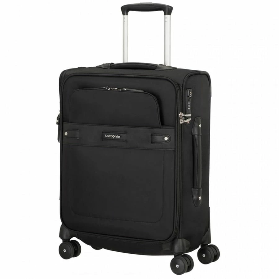 Der Samsonite Beauhaven Trolley ist ein praktischer 4-Rollen Weichgepäck-Koffer. Für die mitgeführten Reiseutensilien besitzt er eine Reißverschluss-Vortasche und das große Hauptfach (über ein dreistelliges TSA Zahlenschloss zu erreichen) mit integrierten Packriemen, RV-Innenfach sowie einem separaten Wäsche-/Hemdenfach. Transportiert wird er mithilfe der vier 360-Grad Rollen, der mehrfach arretierbaren Trollestange und der Handgriffe. Das verarbeitete Polyester des Samsonite Beauhaven Trolley ist besonders strapazierfähig, leicht zu reinigen und wasserabweisend.