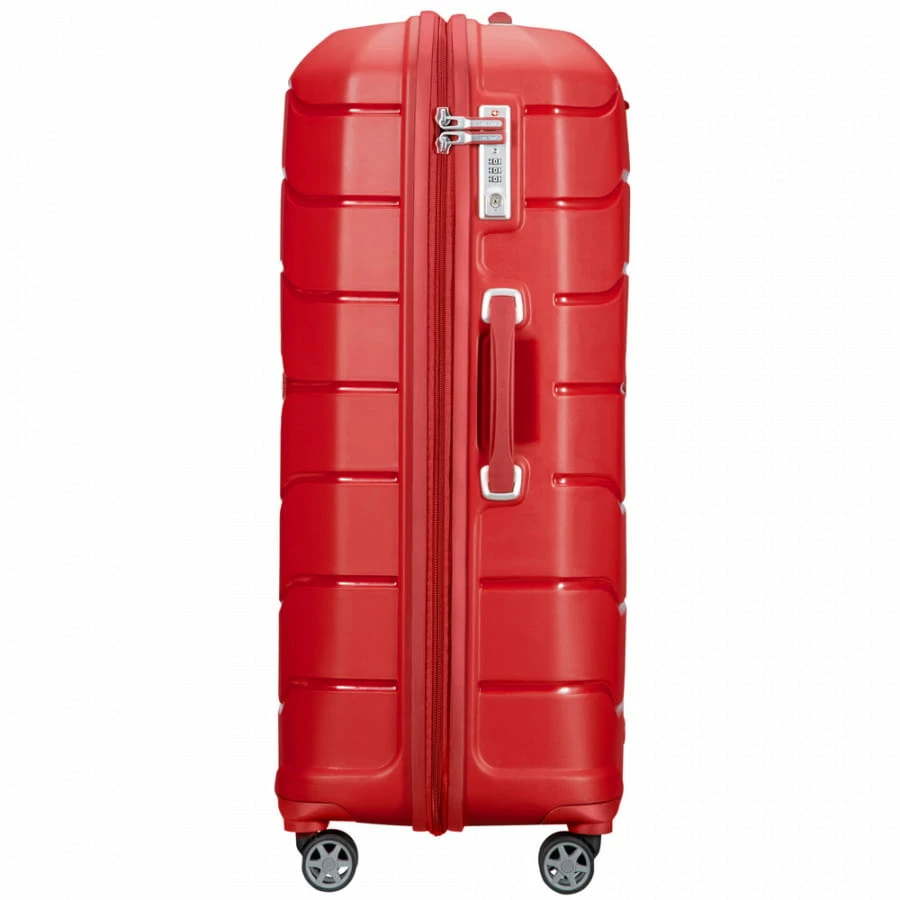 Der Samsonite Flux Trolley gehört zur neuesten Generation der Polypropylen-Koffer und ist der erste Hartschalenkoffer von Samsonite mit einer nach innen verlegten Erweiterungsfunktion – so kann bei Bedarf noch mehr Stauraum geschaffen werden. Auch die restlichen Eigenschaften wie beispielsweise das TSA-Zahlenschloss, das große Hauptfach mit Packriemen, Reißverschluss-Innenfach sowie separatem Wäschefach sind auf dem modernsten Stand. Für einen angenehmen Transportkomfort sorgen beim Samsonite Flux Trolley die vier 360-Grad Doppelrollen, die mehrfach arretierbare Trolleystange und die bequemen Handgriffe.