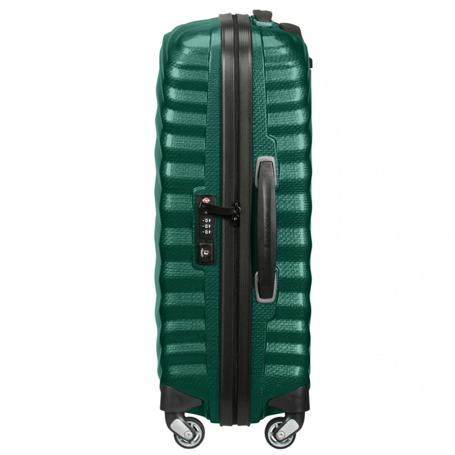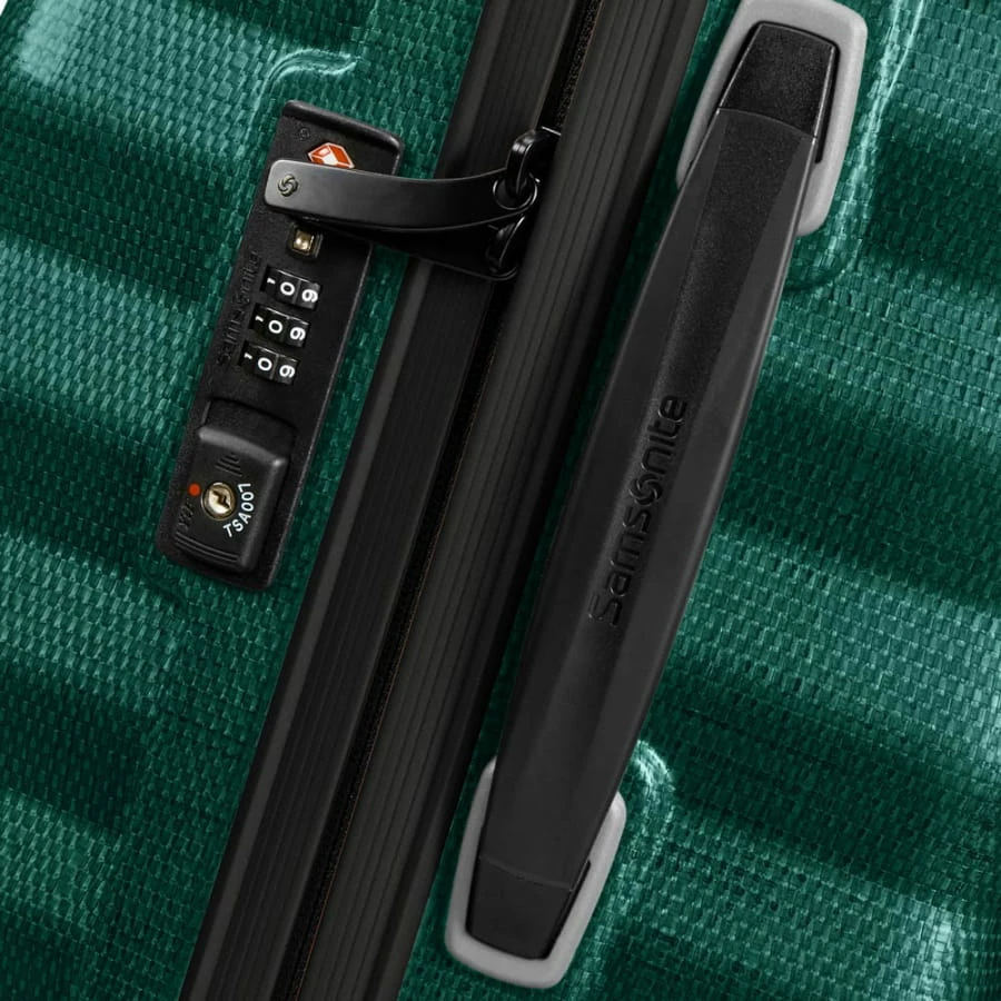 Der Samsonite Lite-Shock Trolley ist ein hochwertiger Hartschalenkoffer, der aus einer innovativen Schalenstruktur namens CURV® (eingetragenes Markenzeichen von CANCO Hungary Ltd) – gewebtes Polypropylen – gefertigt ist. CURV® ist ein besonders leichtes und robustes Material, das auch in der Raumfahrt eingesetzt wird. Dadurch ist der Koffer sehr widerstandsfähig gegen Stöße und Schläge, während er gleichzeitig ein geringes Eigengewicht aufweist. Zusätzlich ist der Samsonite Lite-Shock Trolley mit einem hochwertigen TSA-Zahlenschloss ausgestattet, welches den Inhalt des Koffers sicher vor unbefugtem Zugriff schützt. Im Inneren des Koffers gibt es das geräumige Hauptfach mit integrierten Packriemen, Raumteiler sowie einem separatem Reißverschlussfach, die eine geordnete Aufbewahrung von Kleidung und anderen Gegenständen ermöglichen. Die vier 360-Grad Doppelrollen ermöglichen eine einfache Handhabung und Manövrierfähigkeit auf allen Untergründen. Ein ausziehbarer Griff ermöglicht ein bequemes Ziehen des Koffers, während seitliche Tragegriffe eine einfache Handhabung beim Be- und Entladen gewährleisten.