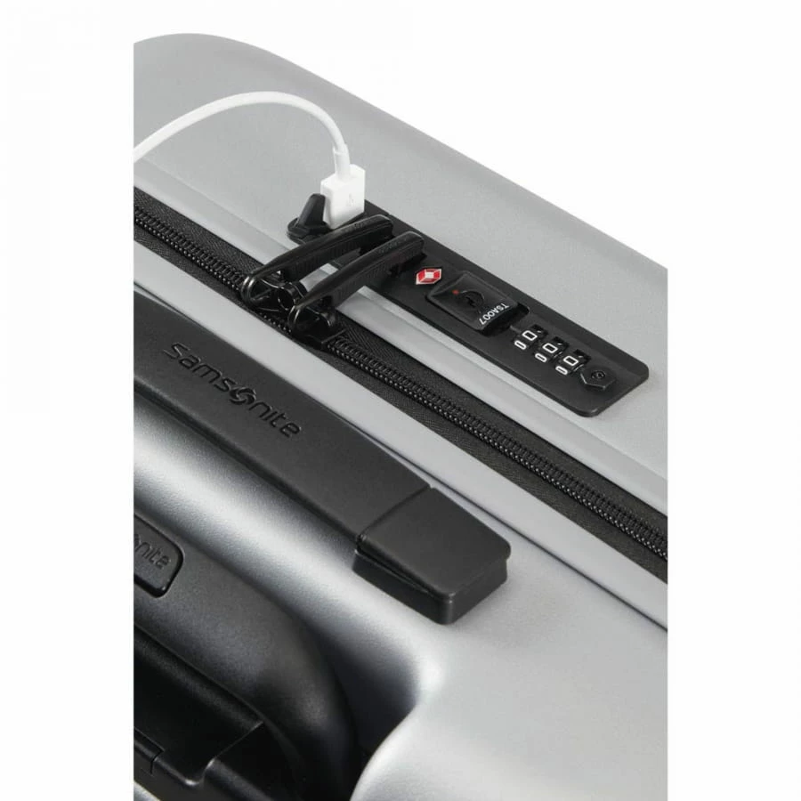 Der Samsonite Quadrix Trolley S verfügt an der Oberseite zudem über einen USB-Anschluss für eine Powerbank (nicht enthalten) und kann dank seiner geringen Abmessungen bei den gängigen Fluglinien als Bordgepäck mitgeführt werden.