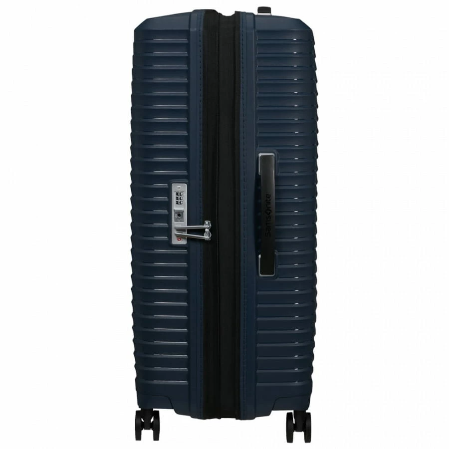 Der Samsonite Upscape Trolley setzt vor Allem auf Komfort und Qualität. Ersteres erreicht er durch die vier gefederten 360-Grad Doppelrollen, die bequemen Handgriffe und die mehrfach arretierbare Trolleystange. Die gewohnte Samsonite Qualität garantieren das moderne Polypropylen und das aus PET-Flaschen recycelte Polyester, welches bei Bedarf herausgenommen und gewaschen werden kann. Auch die Fächer für die Reiseutensilien sind durchdacht gestaltet, denn das große Hauptfach mit Packriemen, die Trennwand mit drei Reißverschlussfächern und ein separates Hemden-/Wäschefach sorgen für viel Stauraum und Ordnungsmöglichkeiten. Weitere Features des Samsonite Upscape Trolley sind das TSA Zahlenschloss, die RV-Dehnfalte zur Volumenerweiterung und ein Adressanhänger.