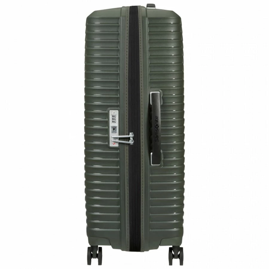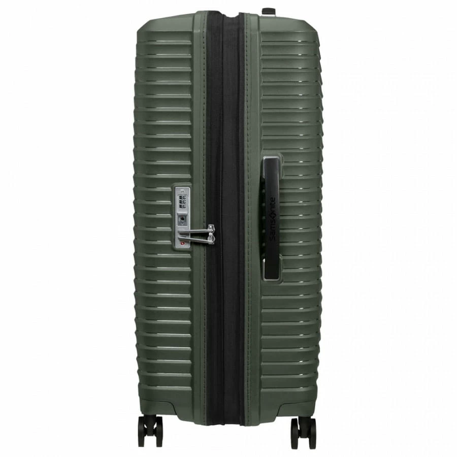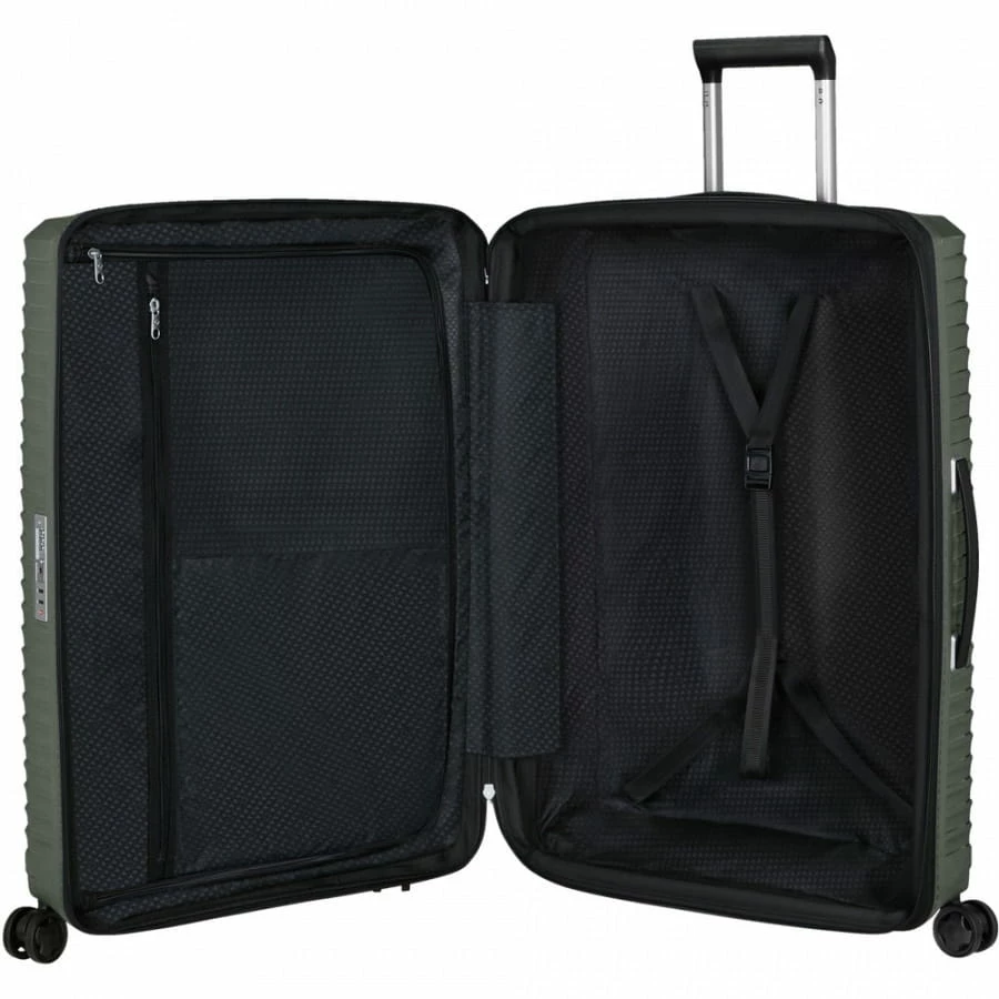 Der Samsonite Upscape Trolley setzt vor Allem auf Komfort und Qualität. Ersteres erreicht er durch die vier gefederten 360-Grad Doppelrollen, die bequemen Handgriffe und die mehrfach arretierbare Trolleystange. Die gewohnte Samsonite Qualität garantieren das moderne Polypropylen und das aus PET-Flaschen recycelte Polyester, welches bei Bedarf herausgenommen und gewaschen werden kann. Auch die Fächer für die Reiseutensilien sind durchdacht gestaltet, denn das große Hauptfach mit Packriemen, die Trennwand mit drei Reißverschlussfächern und ein separates Hemden-/Wäschefach sorgen für viel Stauraum und Ordnungsmöglichkeiten. Weitere Features des Samsonite Upscape Trolley sind das TSA Zahlenschloss, die RV-Dehnfalte zur Volumenerweiterung und ein Adressanhänger.