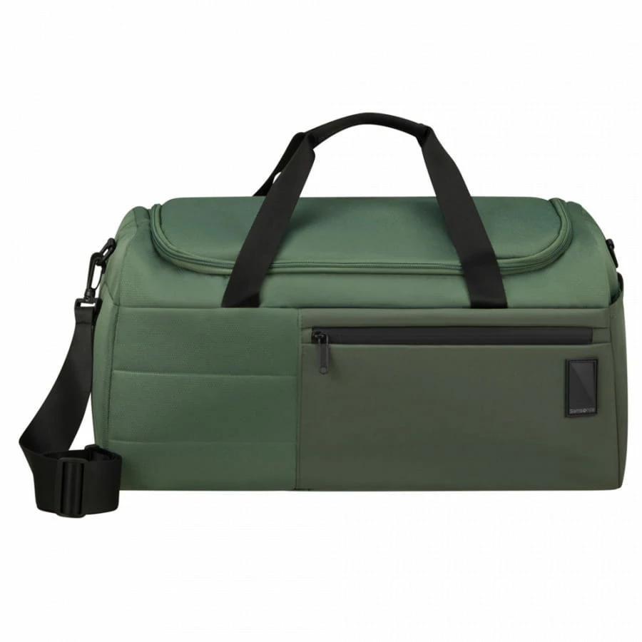 Die Samsonite Vaycay Reisetasche sieht modern aus, überzeugt durch Qualität und kann vielseitig eingesetzt werden – beispielsweise als Reisetasche oder als Sporttasche. Für die mitgeführten Utensilien besitzt sie eine Reißverschluss-Vortasche und das große Hauptfach (über einen RV erreichbar). Weitere Features sind ein Adressfeld, der Trolleyanschlussgurt, zwei Handtrageschlaufen, der verstellbare sowie abnehmbare Schultergurt und das hochwertige Polyester, welches nicht nur PVC-frei, sondern auch aus recycelten PET-Flaschen gefertigt ist.