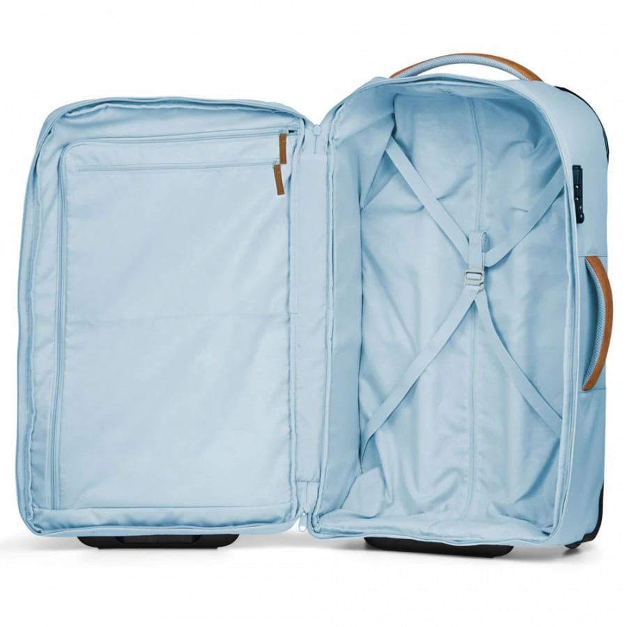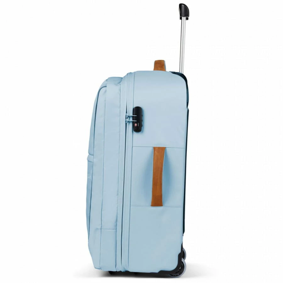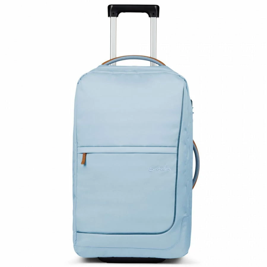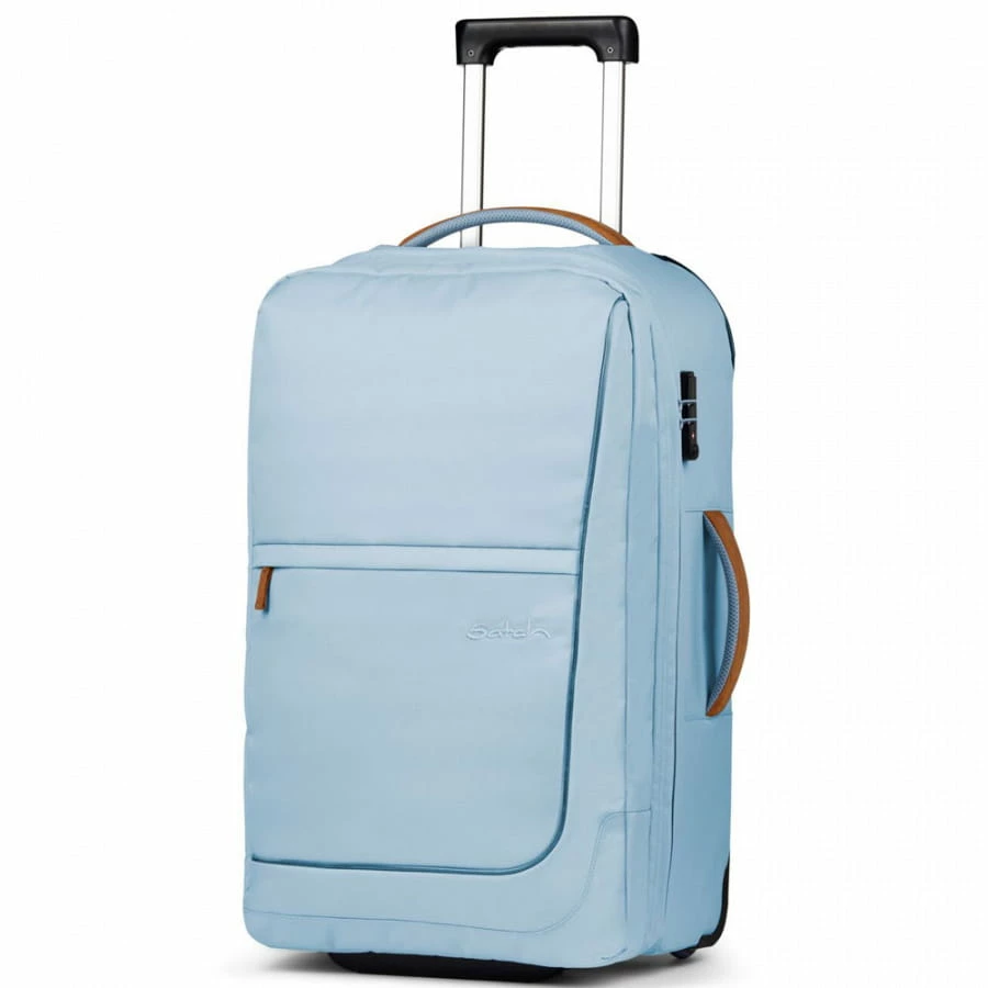 Ob auf Klassenfahrt, unterwegs mit Freunden oder der Familie – der Satch Flow Trolley ist dein zuverlässiger Begleiter. Mit zwei Komfortrollen, einer zweifach arretierbaren Trolleystange, Handgriffen sowie dem Boden mit Kunststoff-Stellfüßen lässt er sich in jeder Situation komfortabel transportieren. Die mitgeführten Reiseutensilien lassen sich gut sortiert im Reißverschlussfach an der Front und im Innenraum unterbringen. Letzteren erreichst du über das dreistellige TSA Zahlenschloss (Kombination frei einstellbar), welcher dann durch das große Hauptfach mit integrierten Packriemen, einem separatem Wäschefach und einem Deckelfach (mit Zugriff von Außen) punkten kann. Weitere Features des Satch Flow Trolley sind ein aufgenähtes Fach für eine Adresskarte, das reflektierende Material an der Front, zwei beiliegende Wäschebeutel (waschbar) und das aus PET-Flaschen recycelte Polyester, welches nicht nur besonders strapazierfähig, sondern auch wasserabweisend ist.