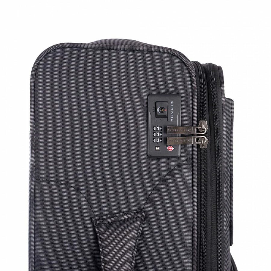 Für ein angenehmes und unkompliziertes Reisen mit Stil sorgt der Stratic Bendigo Light Plus Trolley. Das große Hauptfach, welches durch ein TSA-genormtes Zahlenschloss abschließbar ist, bietet neben dem geräumigen, mit Innenfutter verkleideten Hauptfach mit zwei Packriemen zum Fixieren der Kleidung auch noch ein separates Wäschefach mit Packriemen. An der vorderen Aussenseite des hat der Stratic Bendigo Light Plus zwei große, zusätzliche Reißverschluss-Fächer für den schnellen und unkomplizierten Zugriff. Damit der Transport am Bahnhof, dem Parkplatz oder am Flughafen möglichst unkompliziert verläuft hat der Koffer Handgriffe, eine arretierbare Teleskopstange, die bei Bedarf komplett eingefahren werden kann und vier 360-Grad Doppelrollen.