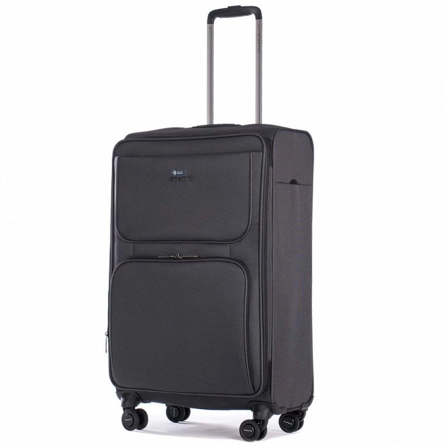 Für ein angenehmes und unkompliziertes Reisen mit Stil sorgt der Stratic Bendigo Light Plus Trolley. Das große Hauptfach, welches durch ein TSA-genormtes Zahlenschloss abschließbar ist, bietet neben dem geräumigen, mit Innenfutter verkleideten Hauptfach mit zwei Packriemen zum Fixieren der Kleidung auch noch ein separates Wäschefach mit Packriemen. An der vorderen Aussenseite des hat der Stratic Bendigo Light Plus zwei große, zusätzliche Reißverschluss-Fächer für den schnellen und unkomplizierten Zugriff. Damit der Transport am Bahnhof, dem Parkplatz oder am Flughafen möglichst unkompliziert verläuft hat der Koffer Handgriffe, eine arretierbare Teleskopstange, die bei Bedarf komplett eingefahren werden kann und vier 360-Grad Doppelrollen.