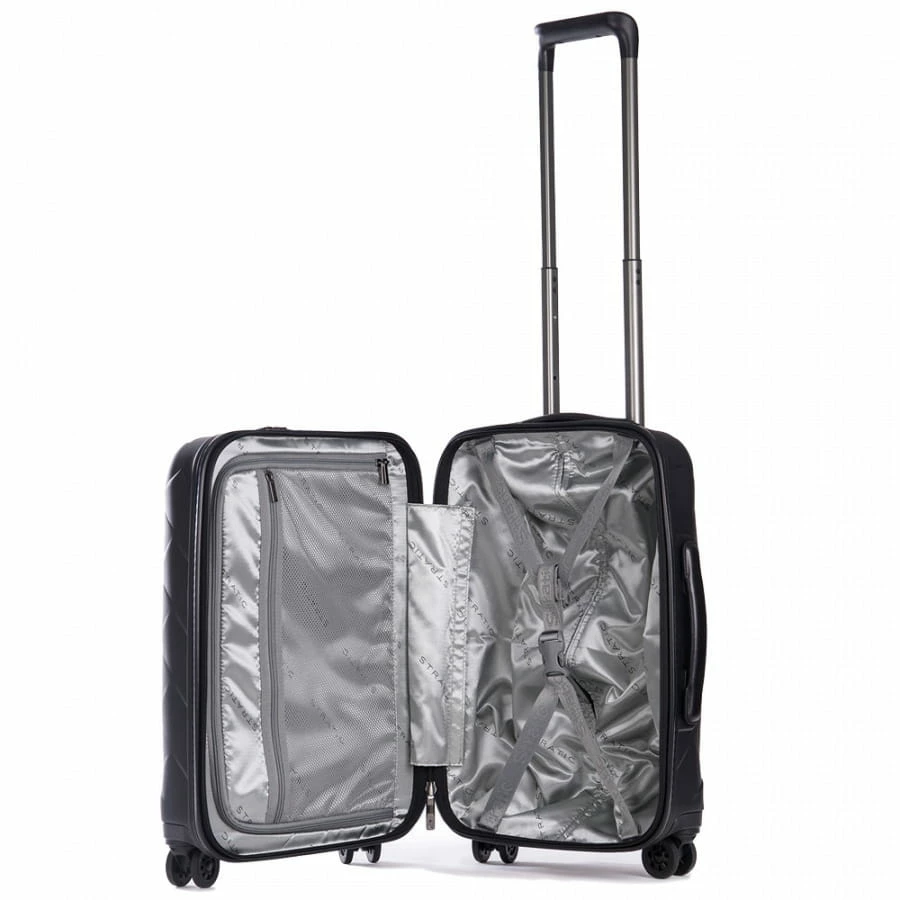 Der Koffer der Größe S kann aufgrund seiner geringen Abmessungen von 55 x 37 x 22 cm bei allen gängigen Fluglinien als Bordgepäck mitgeführt werden.