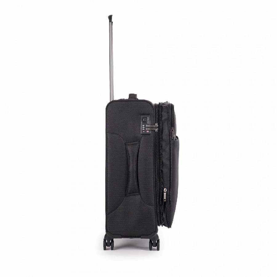 Damit man auf dem Weg in den Urlaub oder die Geschäftsreise möglichst viel Gepäck ohne Aufpreis mit in das Flugzeug nehmen kann, benötigt man einen leichten Koffer wie den Stratic Light Plus Trolley. Dank Leichtbauweise und dem gewichtsarmen sowie strapazierfähigen Polyester lassen sich wichtige Kilos sparen. Dennoch muss der Koffer daher nicht auf die wichtigsten Eigenschaften moderner Reisekoffer verzichten: das große Hauptfach mit integrierten Packriemen sowie separatem Hemden-/Wäschefach, ein TSA-Zahlenschloss und sogar eine RV-Vortasche sind mit an Bord. Durch die leichtläufigen Rollen, der arretierbaren Trolleystange und der Handgriffe kann der Stratic Light Plus Trolley in jeder Situation bequem transportiert werden.