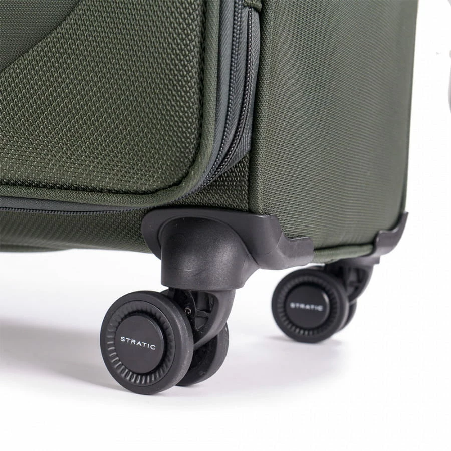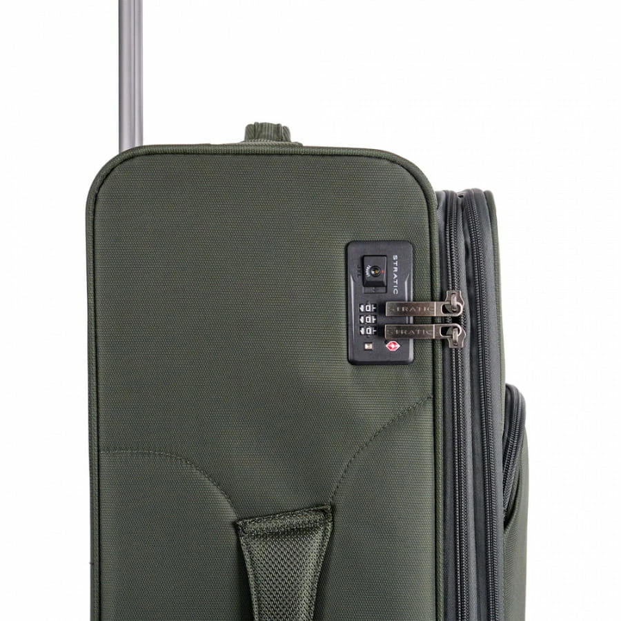 Der Stratic Mix Trolley ist ein wahrer Allrounder, denn er kann sowohl als Urlaubskoffer oder als Geschäftstrolley genutzt werden. Für die mitgeführten Utensilien und Kleidungsstücke bietet der Koffer ein großes Reißverschluss-Frontfach sowie das Hauptfach mit integrierten Packriemen, separatem Hemden-/Wäschefach sowie einem TV-Netzfach auf der Trennwand. Weitere Features sind das TSA-Zahlenschloss (3-stellige Kombination frei wählbar), die mehrfach arretierbare Trolleystange, Handgriffe, das strapazierfähige Nylon-Material und die vier 360-Grad Rollen.
