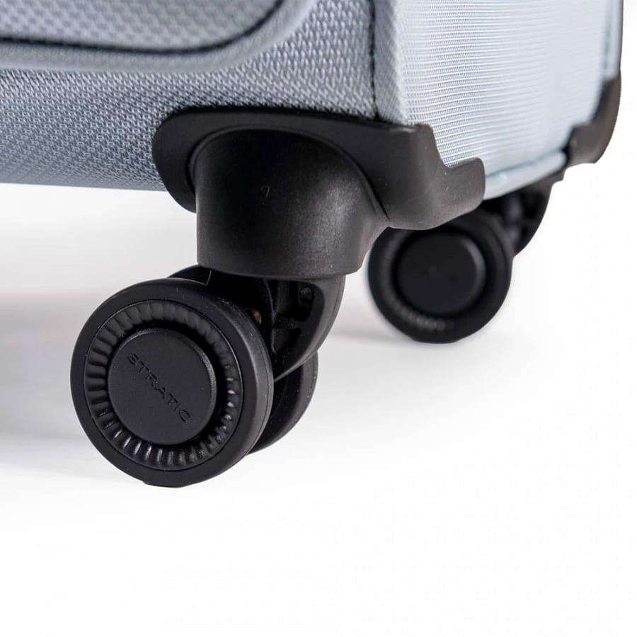 Der Stratic Mix Trolley ist ein wahrer Allrounder, denn er kann sowohl als Urlaubskoffer oder als Geschäftstrolley genutzt werden. Für die mitgeführten Utensilien und Kleidungsstücke bietet der Koffer ein großes Reißverschluss-Frontfach sowie das Hauptfach mit integrierten Packriemen, separatem Hemden-/Wäschefach sowie einem TV-Netzfach auf der Trennwand. Weitere Features sind das TSA-Zahlenschloss (3-stellige Kombination frei wählbar), die mehrfach arretierbare Trolleystange, Handgriffe, das strapazierfähige Nylon-Material und die vier 360-Grad Rollen.