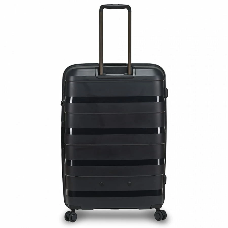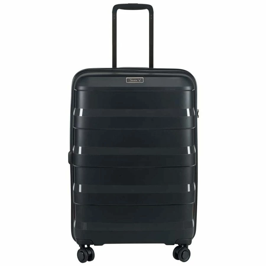Der Stratic Straw Trolley darf sich wirklich innovativ und nachhaltig nennen, denn das verarbeitete Material des Koffers besteht aus einem Mix aus Polypropylen und Stroh. Dadurch ist der Reise- und Businesskoffer nicht nur besonders robust und leicht, sondern trägt auch seinen Teil zum Umweltschutz bei. In Punkto Ausstattung steht er seinen Kollegen in keinster Weise nach, denn er verfüg über ein TSA-Zahlenschloss, ein zweigeteiltes Hauptfach (durch eine RV-Trennwand), integrierte Packriemen und ein RV-Innenfach. Für den nötigen Komfort auf der Reise sorgen beim Stratic Straw Trolley die mehrfach arretierbare Trolleystange, die vier 360° Doppelrollen und die Handgriffe.