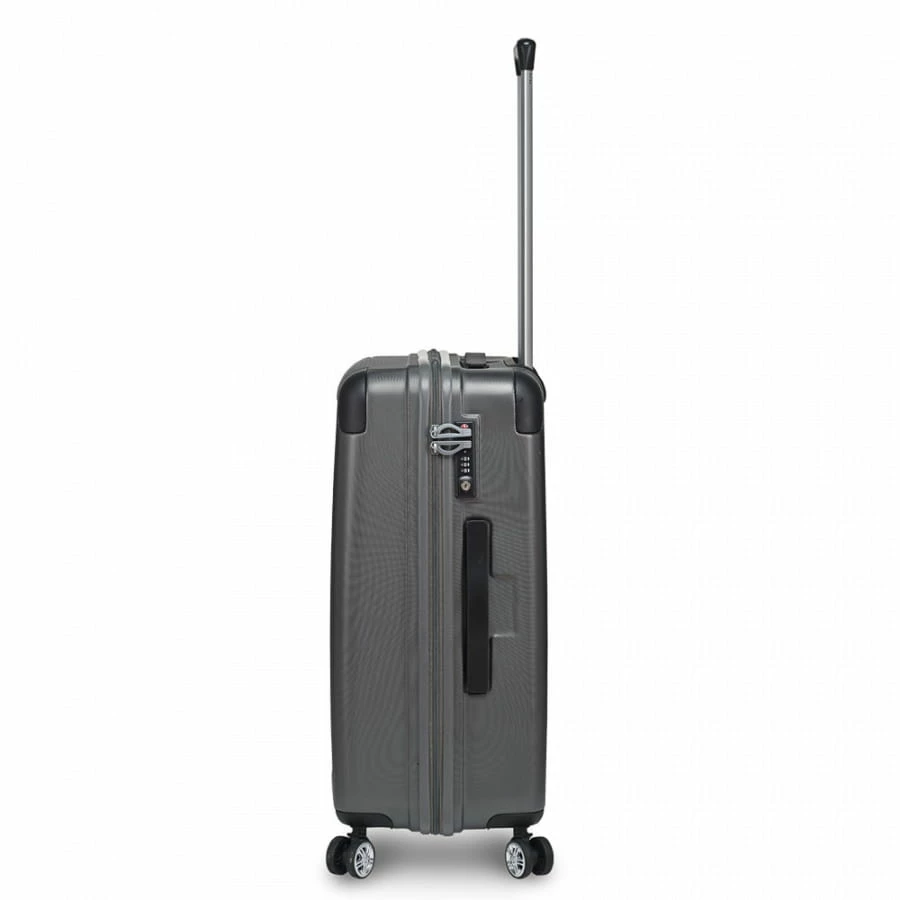 Der Stratic Stripe Trolley ist ein robuster Koffer aus ABS-Kunststoff und wird aufgrund seines schlichten aber dennoch modernen Designs sowohl als Business- als auch als Reisekoffer genutzt. Dank der vier Doppelrollen, der mehrfach arretierbaren Trolleystange und der Handgriffe ist ein fllexibles Handling am Flughafen, im Hotel oder am Bahnhof kein Problem. Den großen Innenraum des Stratic Stripe Trolley erreicht man über das sichere TSA-Zahlenschloss. Hier befindet sich ein Reißverschluss-Innenfach, integrierte Packriemen und ein durch eine RV-Trennwand abgetrenntes Wäschefach.