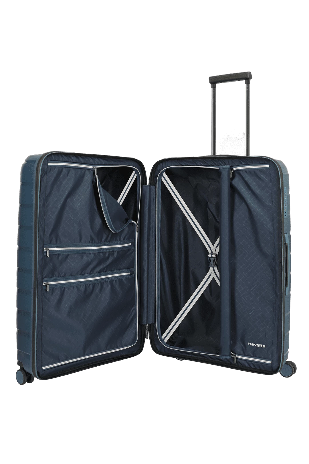 Hier kommt das Raumwunder für alle, die gerne mit viel Gepäck unterwegs sind. Smart, clever und durchdacht: Der großzügige Platz vom Trolley L ist perfekt organisiert – dank übersichtlicher Innenaufteilung. So werden Kleidung, Schuhe & Co. schnell, sicher und mit Freude verstaut.