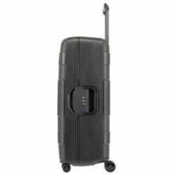 Der Travelite Air Base Trolley besitzt eine einzigartige Oberfläche (Wechselspiel aus glänzender und rauer Oberfläche), einen robusten Korpus aus nahezu unverwüstlichen Polypropylen und zahlreiche nützliche Funktionen. Zu Letzteren gehören das dreistellige TSA-Zahlenschloss (Kombination frei wählbar), das große Hauptfach, die integrierten Packriemen, das separate Wäschefach und die RV-Innenfächer. Vier laufruhige 360-Grad Zwillingsrollen, eine mehrfach arretierbare Trolleystange und die ergonomischen Tragegriffe sorgen für ein angenehmes sowie komfortables Handling des Travelite Air Base Trolley.