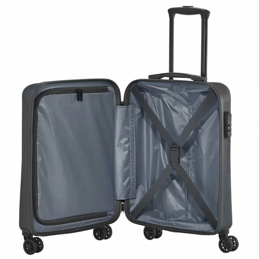 Der Travelite Bali Trolley ist ein technisch und optisch moderner 4-Rollen Hartschalenkoffer. Neben einem TSA Zahlenschloss besitzt er ein großes Hauptfach mit integrierten Packriemen sowie eine durch eine RV-Trennwand abgegrenztes Wäschefach. Für einen angenehmen Transportkomfort sorgen die Handgriffe, die mehrfach arretierbare Trolleystange und die vier 360-Grad Doppelrollen.