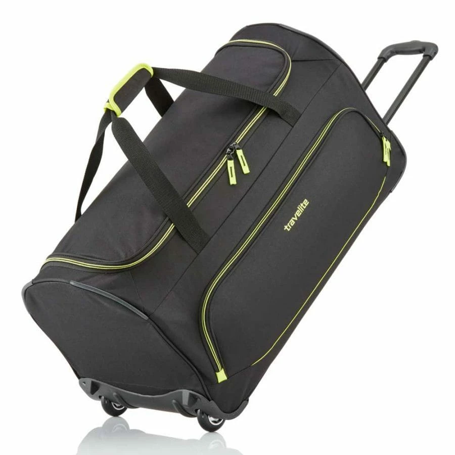 Diese Sport- und Reisetasche bietet mit einem rießigen Hauptfach viel Platz für Kleidung, Schuhe und Co. und kann durch die zwei Trolley-Rollen und der arretierbaren Trolleystange auch wie ein Koffer bewegt werden. Weitere Features der Travelite Basics Fresh Trolley Reisetasche sind ein großes Netz-Reißverschlussfach im Inneren sowie Aussentaschen an der Längsseite.
