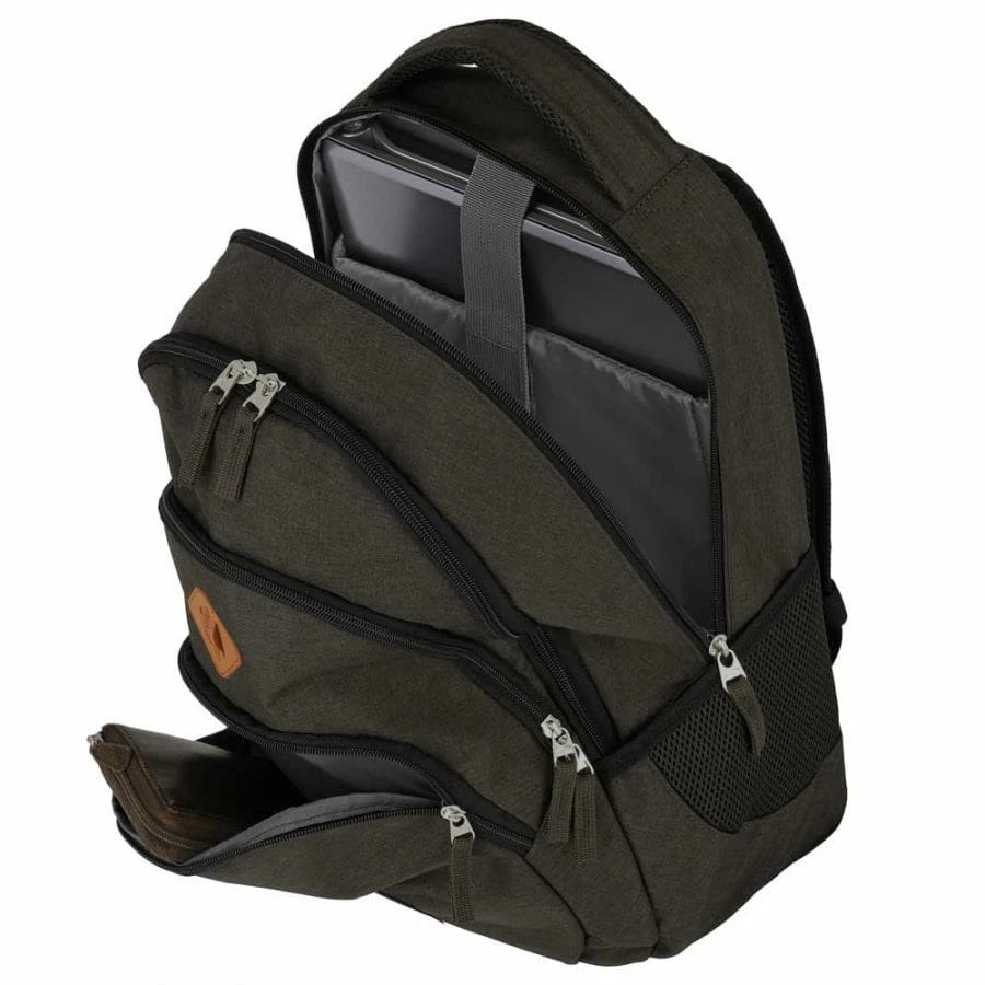 Dieser Rucksack ist nicht nur auf Reisen ein praktischer Begleiter, denn er kann auch auf dem Weg in die Arbeit, in der Uni oder in der Freizeit genutzt werden. Dank seiner geringen Abmessungen von 31 x 45 x 16 cm kann er bei den gängigen Fluglinien problemlos als Bordgepäck mitgeführt werden und lässt sich dank Trolleyanschlussgurt, den gepolsterten Schultergurten, einem Brustgurt und dem Handtragegriff auch sonst angenehm transportieren. Die Reise-, Arbeits- oder Freizeitutensilien lassen sich gut sortiert in den zwei Netz-Seitentaschen, in einem der beiden Hauptfächer (das hintere mit gepolstertem 15-Zoll Laptopfach), der Organizertasche und in der Vortasche unterbringen. Seinen speziellen Look erhält der Travelite Basics Rucksack Melange durch das Polyester in Melange-Optik und die Lederapplikationen.