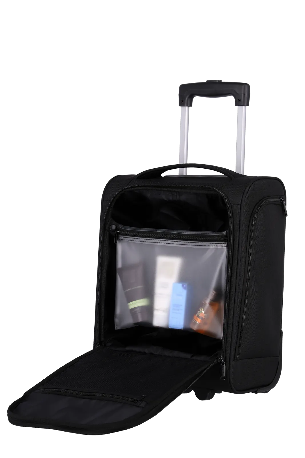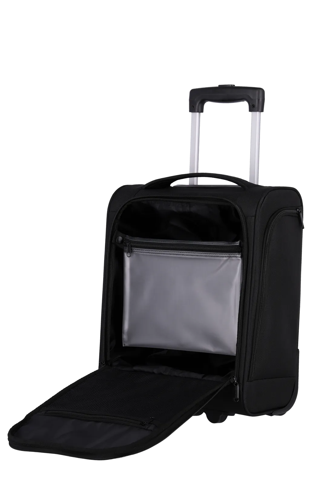 Der praktische und leichte Weichgepäcktrolley Cabin besteht aus widerstandsfähigem Polyester und wurde speziell für den Einsatz als Bordgepäck entwickelt. Dank seiner kompakten Abmessungen ist er bei vielen Fluggesellschaften als Handgepäck zugelassen. Im Inneren überzeugt das Innenfutter in Kombination mit praktischen Packgurten, die Kleidung und Co. sicher an Ort und Stelle halten.