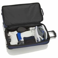 Die Travelite Kick Off Trolley Freizeittasche XL verfügt über ein Hauptfach mit großer Öffnung, zwei seitliche Taschen und ein Frontfach, in welchen Die Urlaubs- Sport- oder Freizeitutensilien ohne Mühe verstaut werden können. Transportiert wird die große Tasche entweder am zweigeteilten Handtragegriff, an einem der Griffe oder mithilfe der beiden Komfortrollen und der Trolleystange. Weitere Features der Travelite Kick Off Trolley Freizeittasche XL sind der Kantenschutz, die verstärkte Bodenplatte und das widerstandsfähige sowie leicht zu reinigende Polyester.