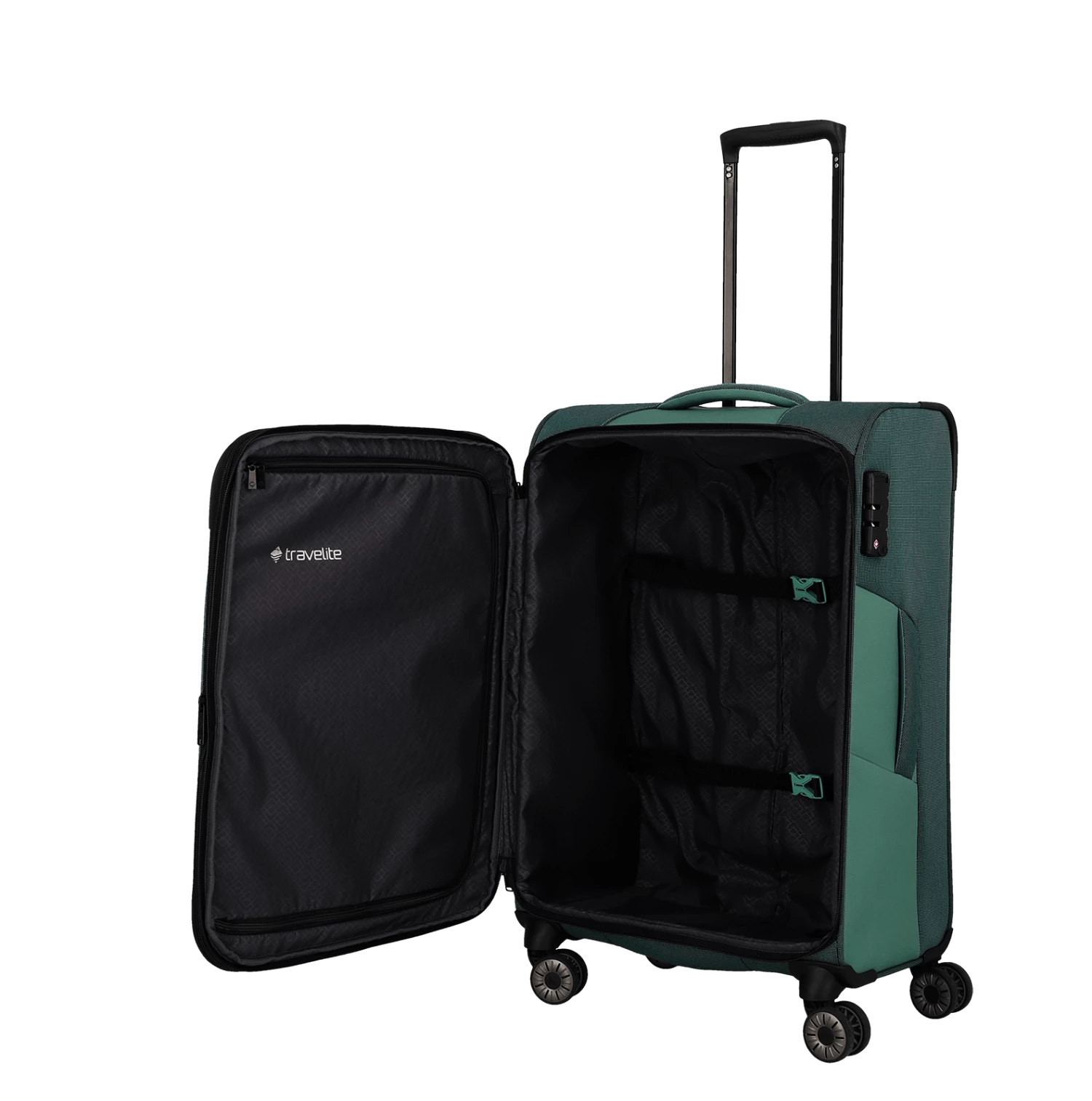 - Dehnfalte für erweitertes Packvolumen (Größe M und L)